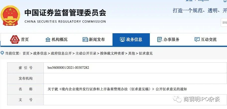 2021年12月24日,中国证监会在其官网向社会公众公布了中国证监会会同国务院有关部门组织起草的《国务院关于境内企业境外发行证券和上市的管理规定(草案征求意见稿)》及《境内企业境外发行证券和上市备案管理办法(征求意见稿)》,就全面覆盖境外上市的相关基础制度规则公开征求意见。