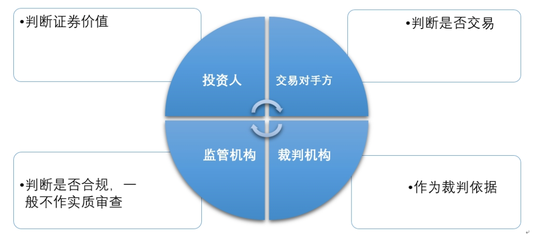综上,基于信息披露制度的特点我们可以得知,一旦上市公司在这些宗旨要求之外去行事或者做披露的,可能会产生相应的责任纠纷,与此同时,这点对于诉讼和仲裁而言非常重要,证据的真实性、证明力是该份证据被采纳的条件之一,举证方要对证据的相关真实性、合法性、关联性以及证明力度向裁判者包括法庭以及仲裁庭去证明。那么,在上文所述原则的指导下,可以间接得出一个结论:上市公司的公告在某种程度上基于法定的披露要求的限制,具有相对的一个可靠性。