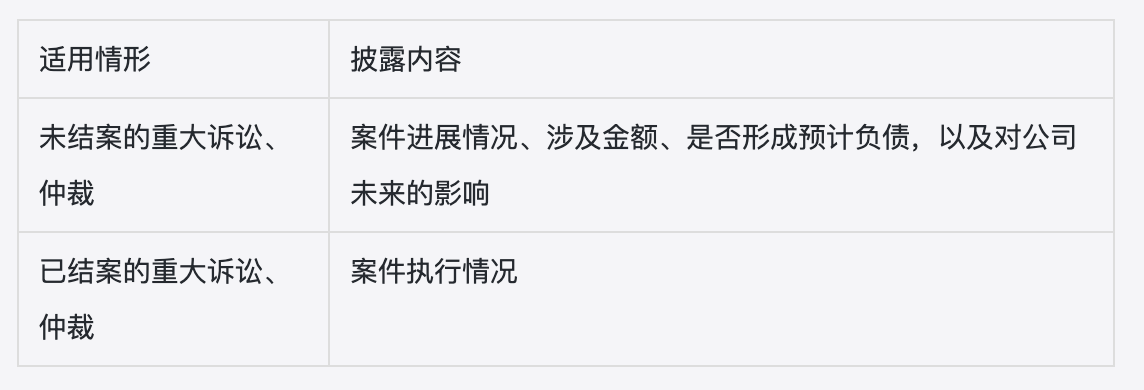我国相关法条规定,上市公司所涉重大诉讼、仲裁情况应当予以披露,具体披露要求如下: