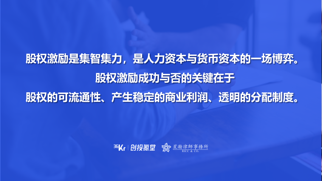 其实,股权激励并不只是法律问题,如果我们今天只讨论股权激励的法律问题,那我们可以说说文本如何设计,但是股权激励更重要的是管理。现如今,股权激励已经是很多商学院的标配课程,相信几乎没有创业者不知晓股权激励。今天我将从律师、律所创始人的角度,结合实务经验,谈谈我眼中的股权激励,以期对各位有所帮助。