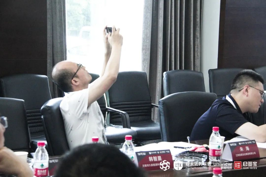 江阴市企业法治工作协会会长刘印、秘书长邹雅芳,海澜集团、江苏华宏实业集团有限公司、江苏江南水务股份有限公司、江苏长电科技股份有限公司、双良集团、江阴市新国联投资发展有限公司等近20家企业的公司高层、法务总监参与本次活动。