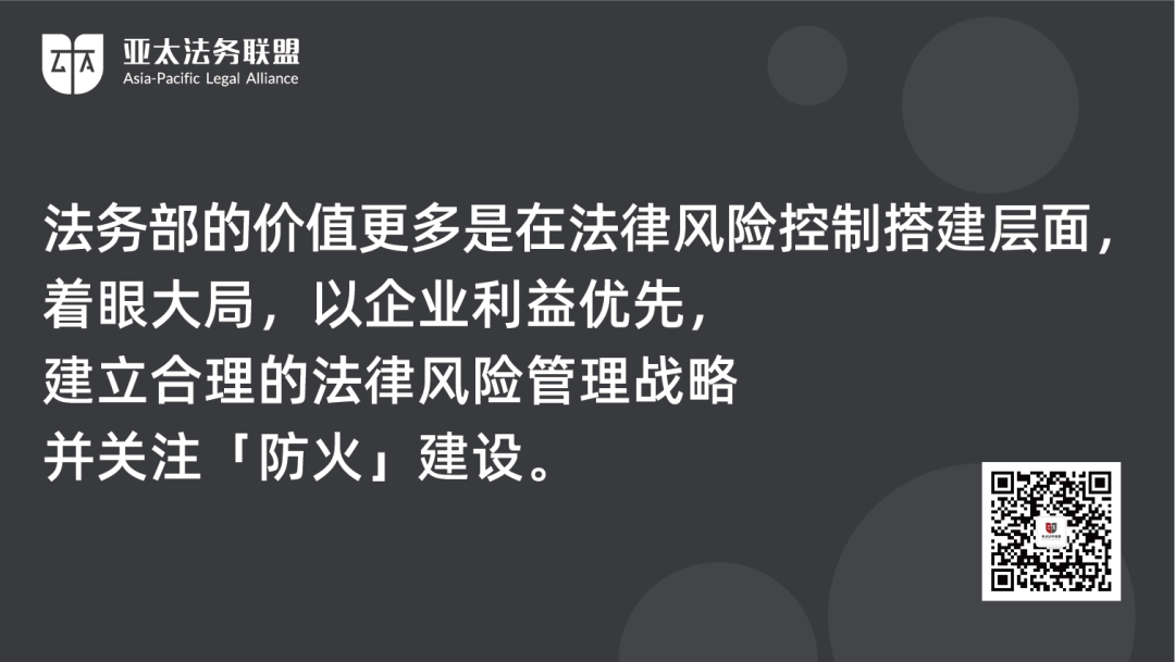 亚太法务联盟开设《法总经验谈》专栏,走访行业知名企业法务总监,向法律人传递行业领先法务群体的专业业务水平与个人品牌形象,分享高端法务群体对所处行业领域法律热点疑难问题的看法与见解。