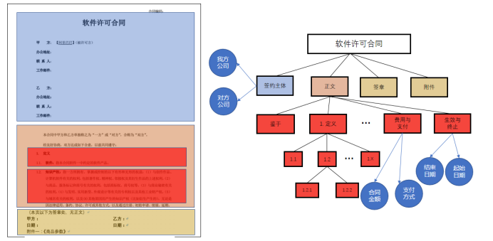 康积华表示,一份合同一般包含签约主体、正文、签章以及附件等四个模块。其中,正文部分可以细化成若干个条款。在合同审查过程中,AI技术可以对不同的模块进行不同的审核。比如,在签约主体模块AI技术能够审查我方公司与对方公司的信息;在费用与支付模块可以审查合同金额与支付方式......