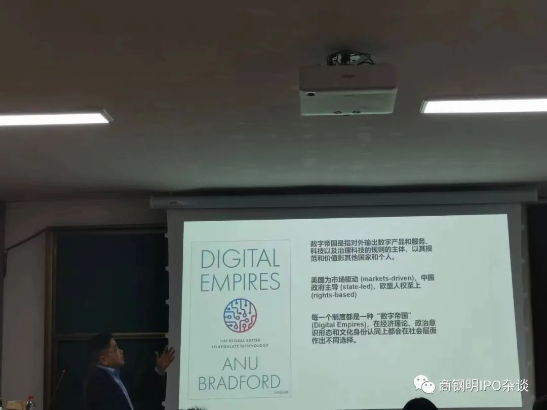 在课程的开始,我对数字革命进行了简要的介绍,以威马汽车相关新闻、区块链、元宇宙等作为案例,指出“技术是硬件,法律是软件,硬件+软件=兼容运行”,数字革命时代会对现有法律体系产生极大影响,对法律人即是挑战又是机遇。为帮助同学们更加全面深入地了解数字革命,我向大家推荐了书籍《数字帝国》,并对书中主要内容分享了自己的见解。