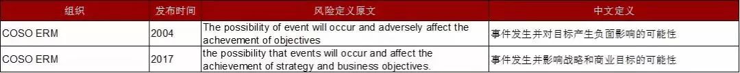 COSO新升级的风险定义在范围上有所扩充,在目标上有所聚焦。但很遗憾的看到,COSO的定义一直还在延续将风险定义落脚在可能性上的传统做法。