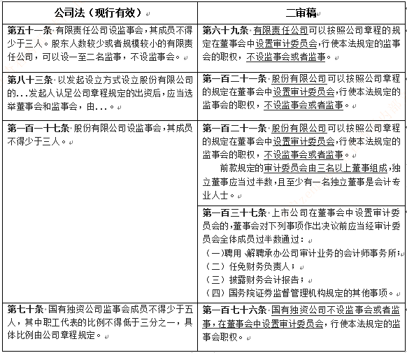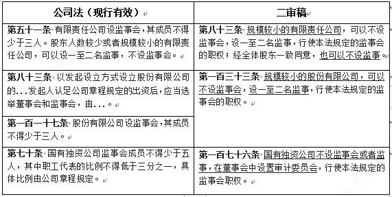 本文先從公司法修訂變化之“監事會制度改革”著手梳理比對。