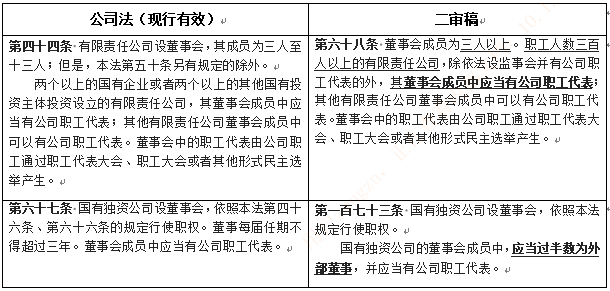 這與現行的《公司法》不同:有限責任公司只有國有企業才會設置職工代表的董事會成員;股份公司的董事會成員可以有職工代表,但不強制要求。